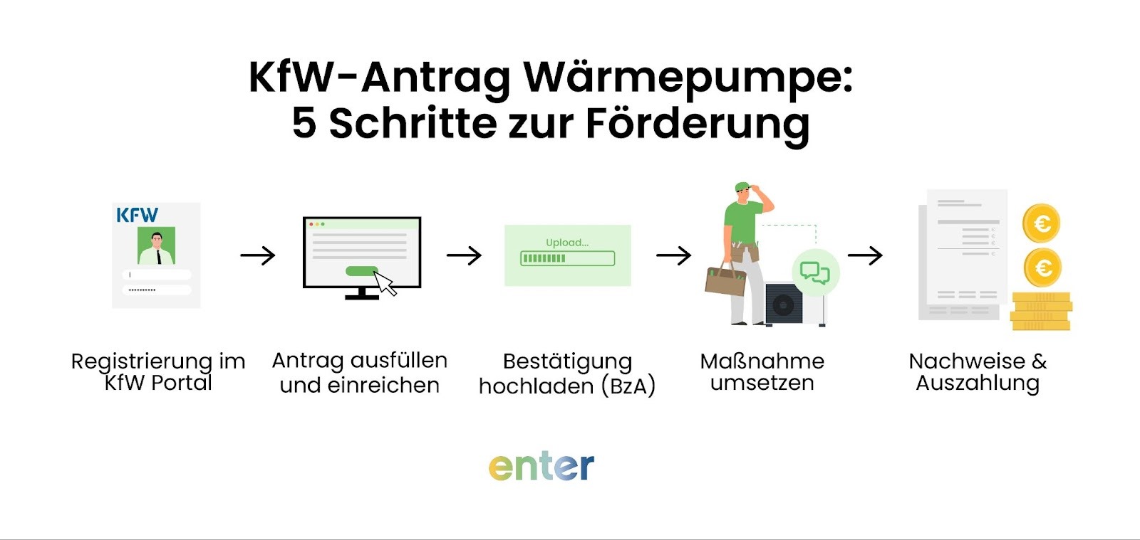 - Rundum-Begleitung: Von der ersten Idee über die Antragstellung bis zur fertigen Installation und Auszahlung – Enter ist an Ihrer Seite.