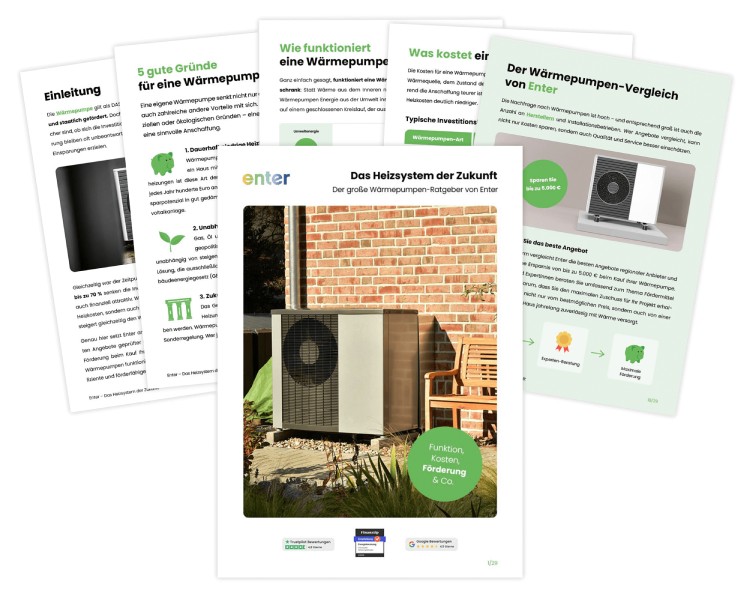 Als neutrale Plattform vergleichen wir für Sie die besten Angebote für Ihre Wärmepumpe und sichern Ihnen bis zu 5.000 € Ersparnis sowie die maximal mögliche Förderung. Dazu analysieren die Energieeffizienz-Experten von Enter den energetischen Zustand Ihres Hauses und vergleichen Angebote verschiedener Fachbetriebe. Außerdem sichert Enter Ihnen die maximal mögliche Fördersumme noch vor Beginn der Umrüstung.