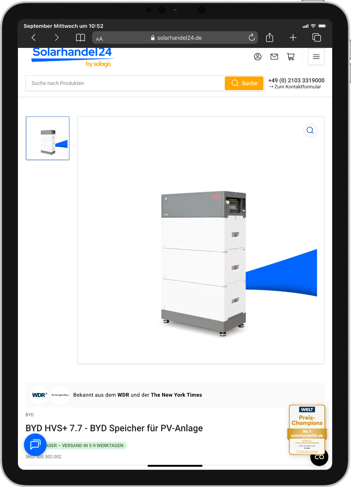 - 10 Jahre Garantie auf Batteriespeicher und Wechselrichter