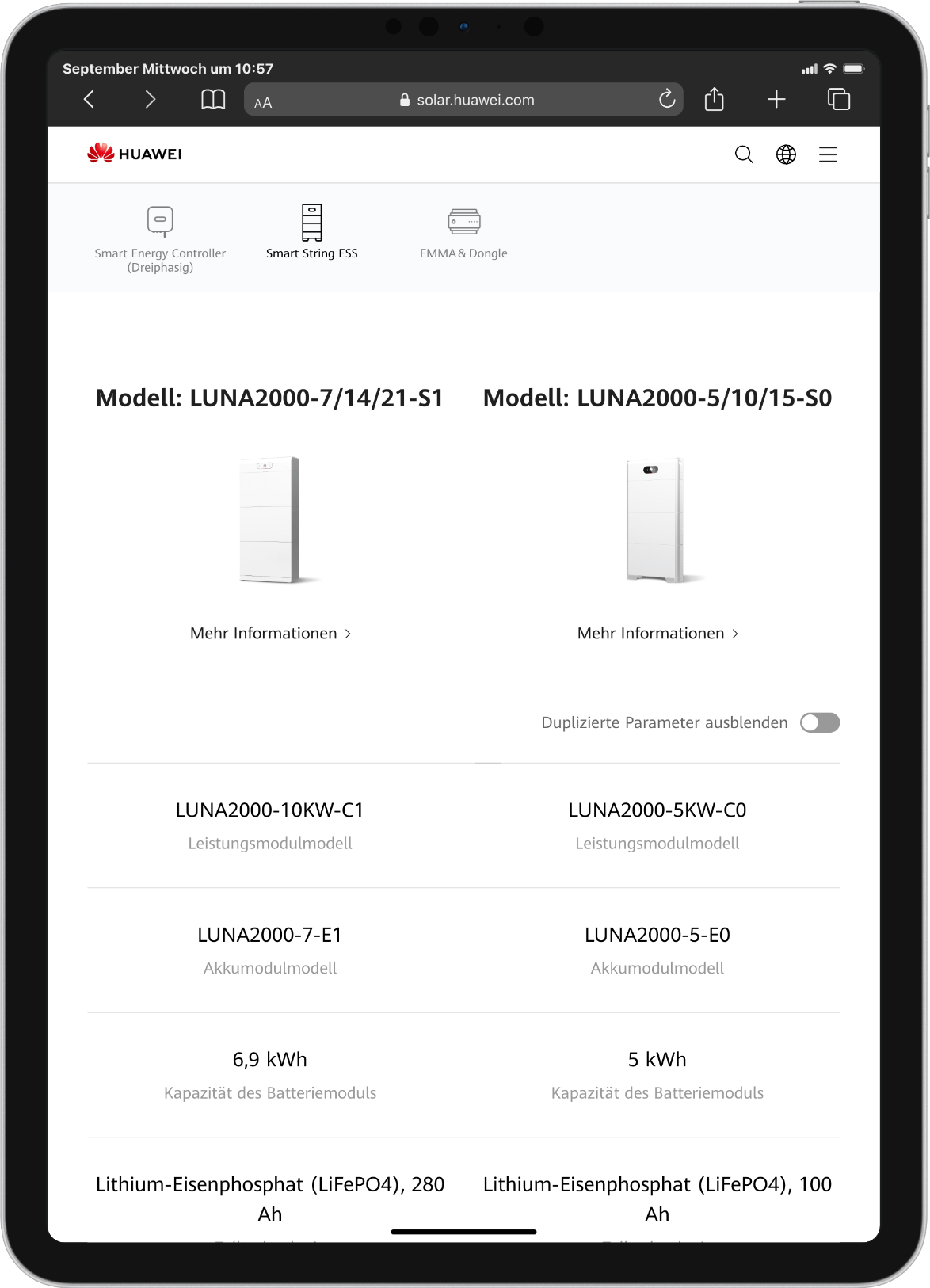Der Huawei Smart ESS+ ist ein technologisch ausgereiftes Stromspeichersystem des chinesischen Technologieriesen Huawei. Das Unternehmen bringt seine umfassende Expertise im Bereich Elektronik und intelligente Vernetzung in den Markt fĂŒr Heimspeicher ein. Mit einem Fokus auf Energieeffizienz und smarte Funktionen richtet sich der Huawei Smart ESS+ an Hausbesitzer, die eine zukunftssichere und intelligente Lösung suchen.